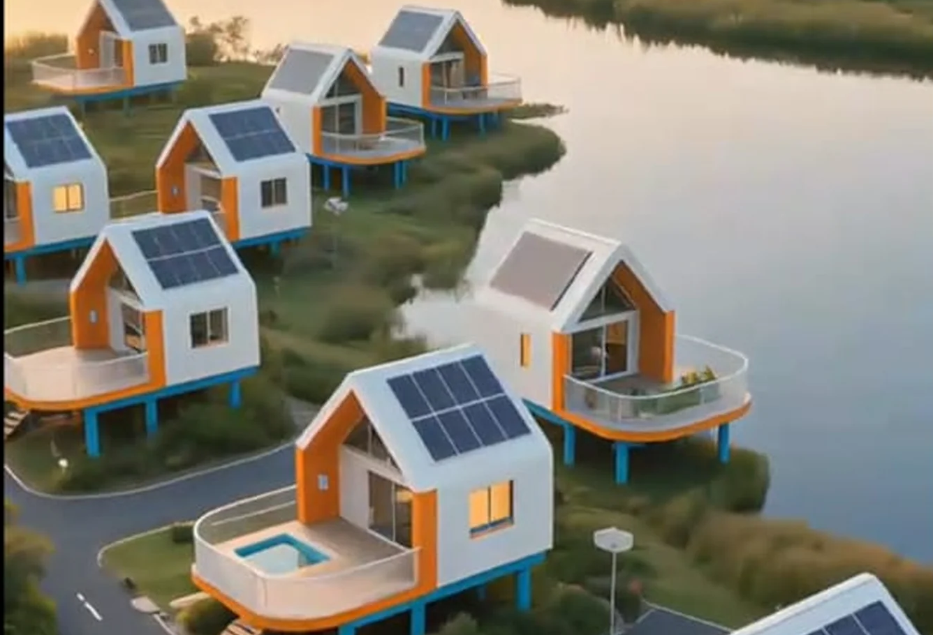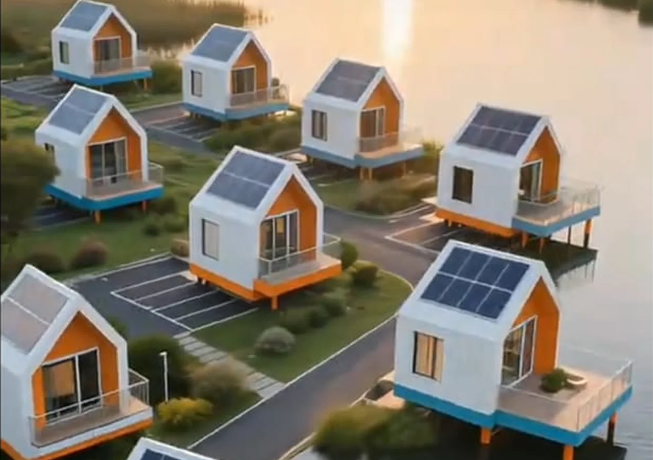 Modules circulaires préfabriqués, montage rapide, extensions faciles (terrasse, mezzanine, suite).